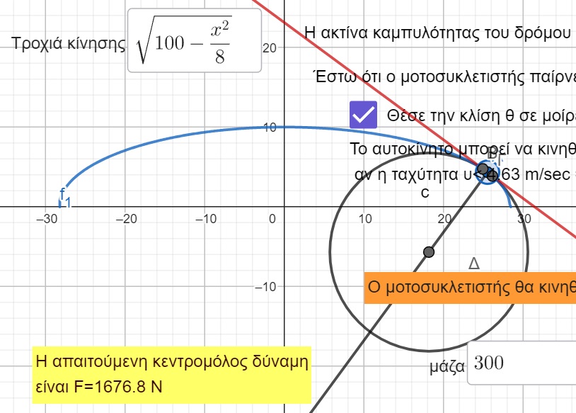 Θεωρώντας μηδενική τριβή από το οδόστρωμα η κεντρομόλος δύναμη που απαιτείται για
