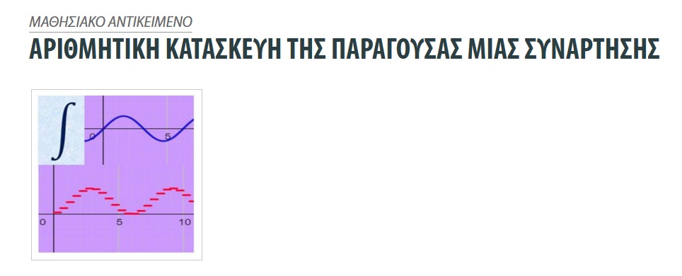 Το παραπάνω link οδηγεί σε εφαρμογή που κατασκευάζει αριθμητικά με διάφορους βαθμούς προσέγγισης τη γραφική συνάρτηση της παράγουσας (αρχική συνάρτηση) για οποιαδήποτε συνεχή συνάρτηση δώσει ο χρήστης ακόμα και στην περίπτωση που δεν υπάρχει κλειστός τύπος της παράγουσας. Ο χρήστης έχει τη δυνατότητα να πειραματιστεί με την προσεγγιστική και οριακή διαδικασία στον προσδιορισμό της γραφικής παράστασης της παράγουσας μέσα από τη μετακίνηση 2 δρομέων παρέχοντας με αυτόν τον τρόπο νοηματοδότηση στην έννοια της παράγουσας.Η εφαρμογή συνοδεύεται επιπλέον από φύλλο εργασίας με ασκήσεις που αναφέρονται στην ταχύτητα και τη θέση ενός κινητού ώστε ο χρήστης να εξοικειωθεί με τα εργαλεία της εφαρμογής και να κατανοήσει το νόημα της παράγουσας.